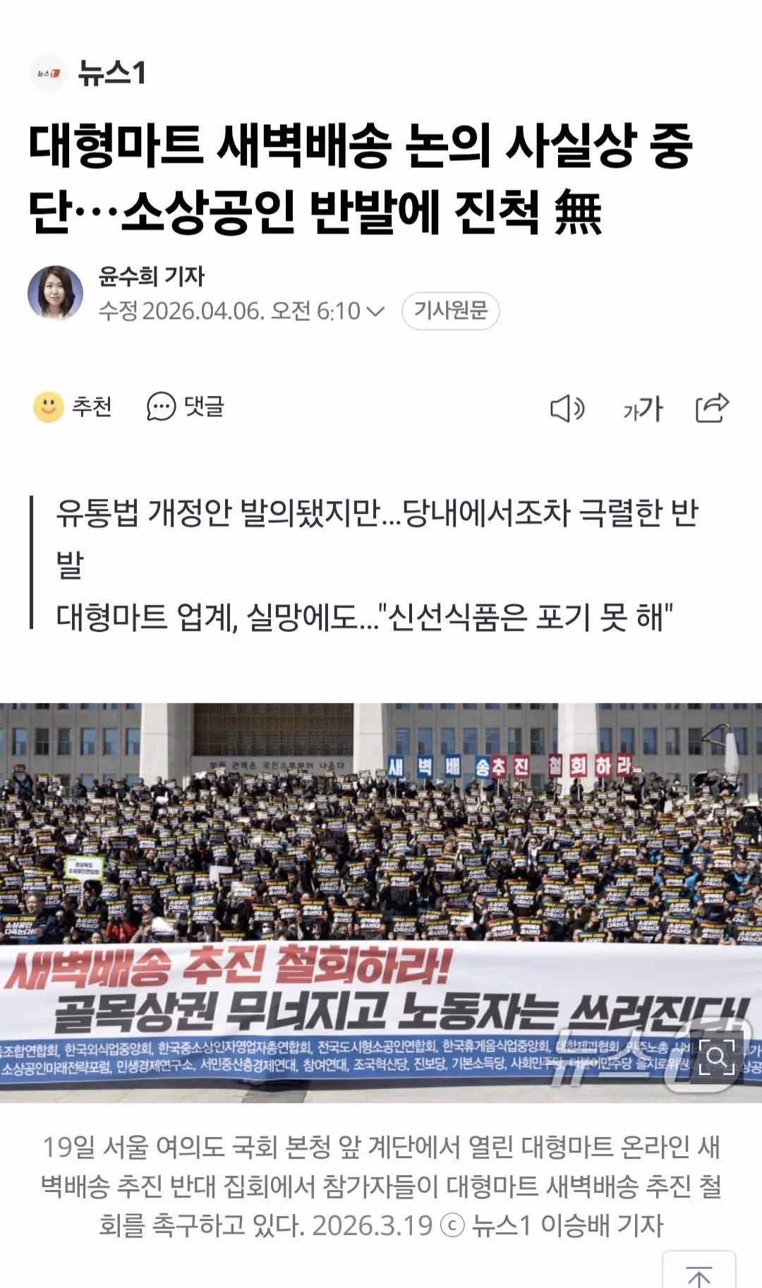 쿠팡 까부는게 꼴받으니까 생각도 안하고 지른거네 막상 지르고 보니까 시장상인들 반발 심하니 못나가는거고