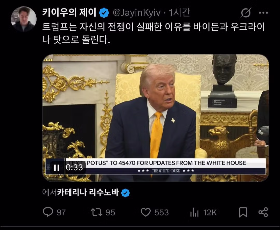 트럼프 인터뷰) "조 바이든이 우크라에 무기를 퍼줘서 이란 전쟁을 망쳤다"