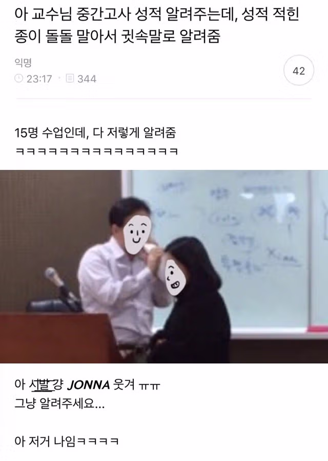 중간고사 성적 귓속말로 알려주는 교수님