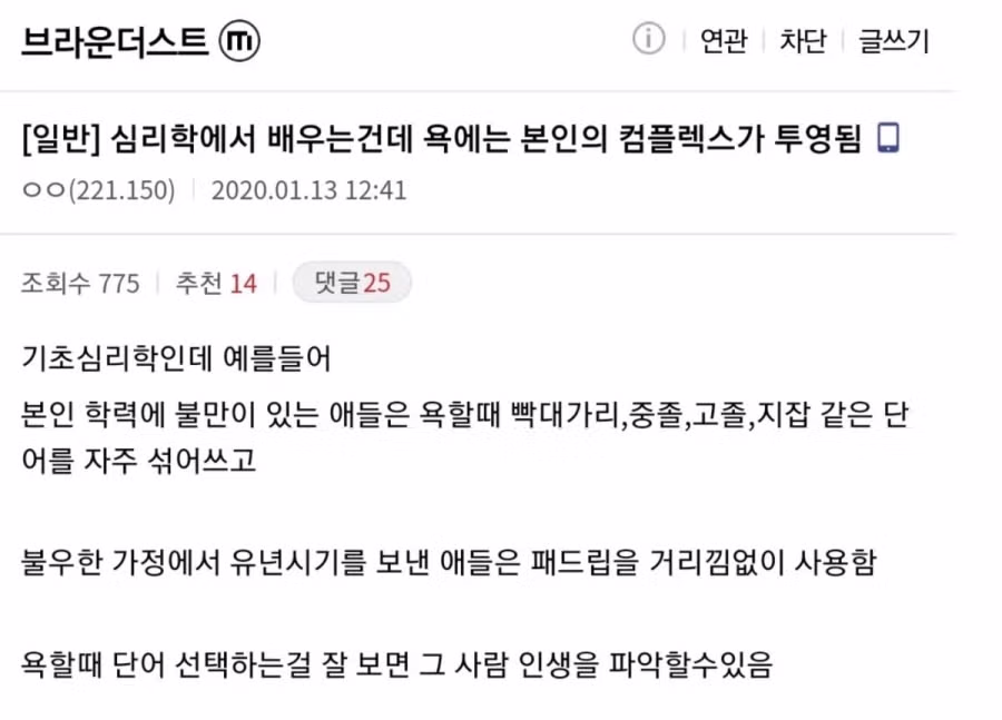 욕에는 본인의 컴플렉스가 투영된다.