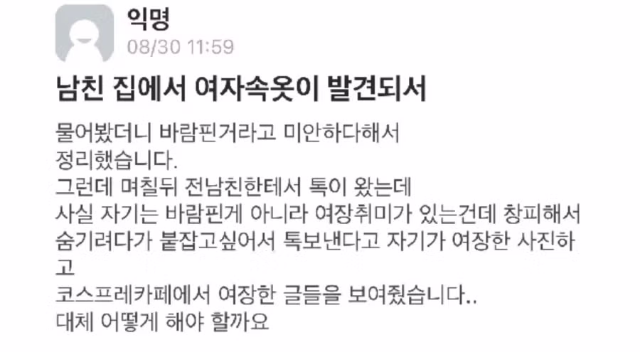남친 집에서 여자 속옷을 발견한 여자친구
