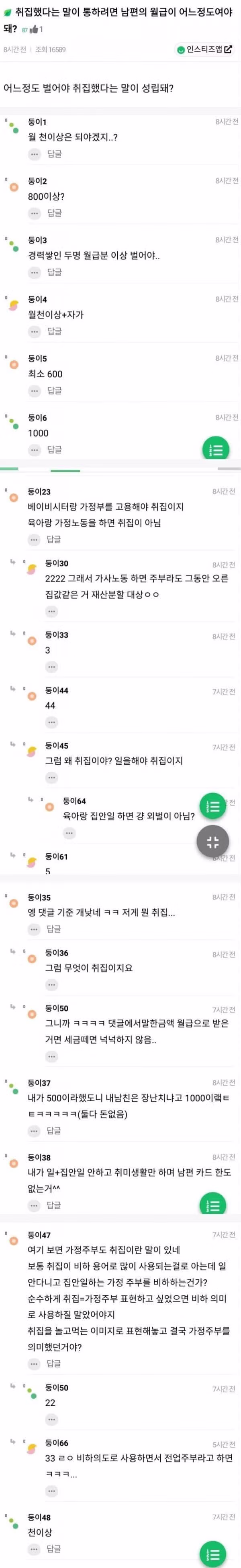 취집했다는 말이 통하려면 남편의 월급이 어느정도여야함?