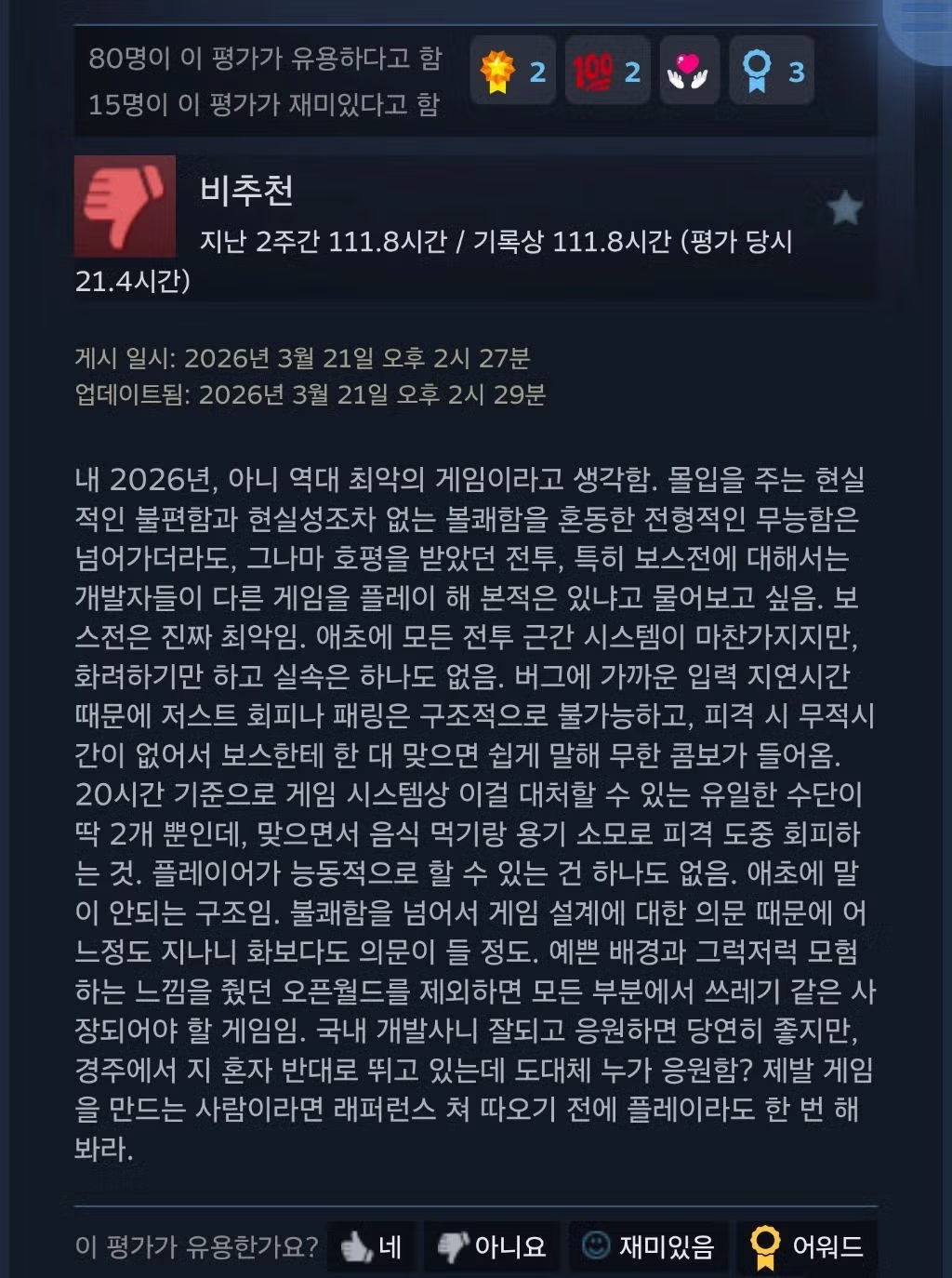 붉은 사막을 20시간이나 한후 역대 최악의 게임이라고 리뷰 남긴 사람 근황.jpg