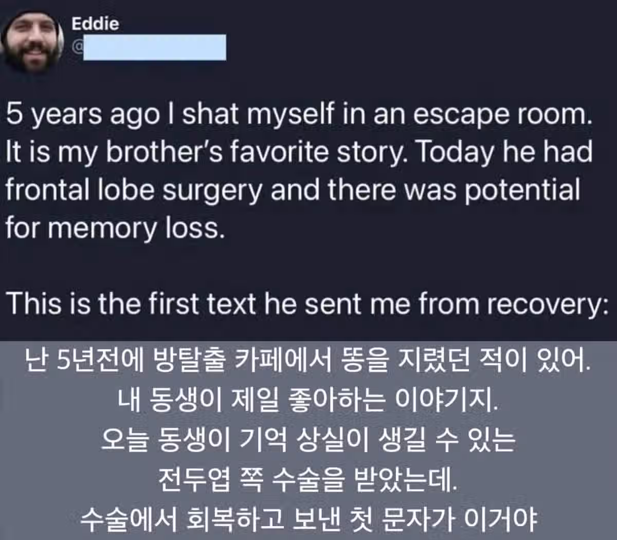 위험한 뇌수술을 마친 동생이 보낸 문자