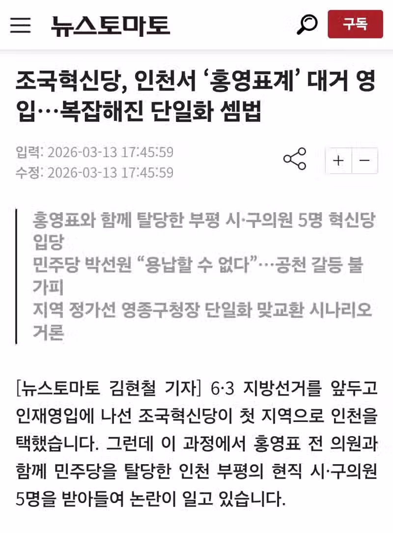 조국혁신당, 인천서 ‘홍영표계’ 대거 영입…복잡해진 단일화 셈법