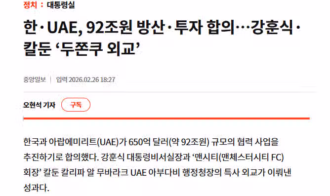 한·UAE, 92조원 방산·투자 합의