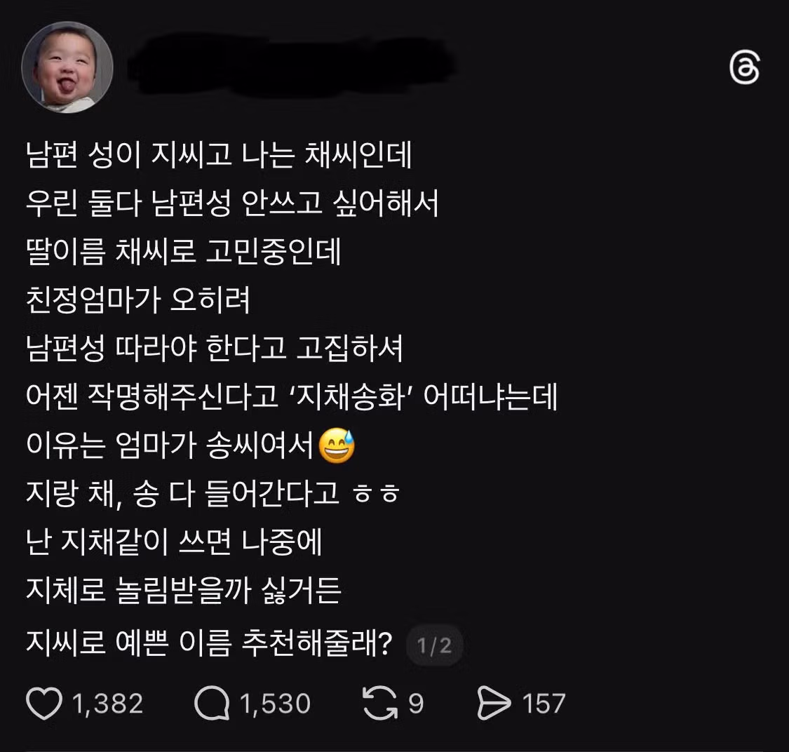 채씨 성 예쁜 이름을 고민하는 여자.jpg