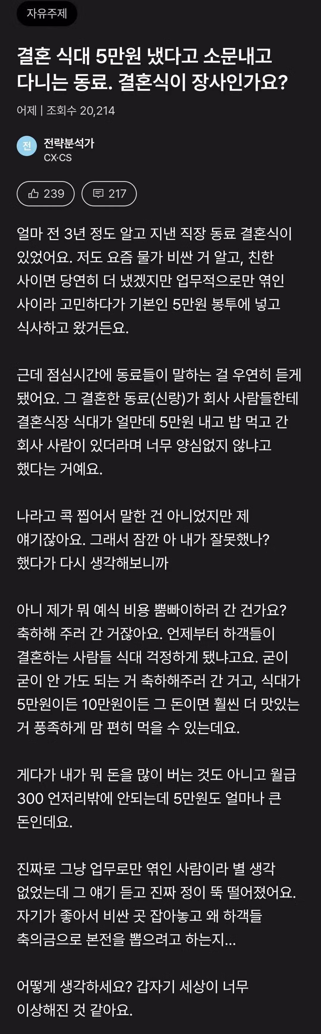 없는 놈이 무리해서 결혼하면 식당 주인마냥 객단가 계산할 수밖에 없음.