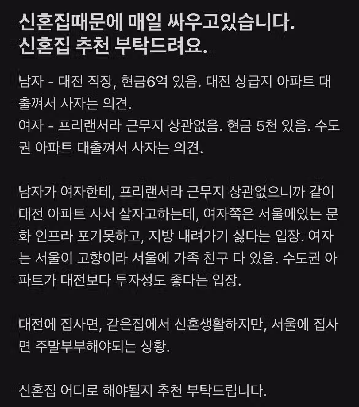 자꾸 대전에 살자고 하는 남자친구 때문에 고민입니다.