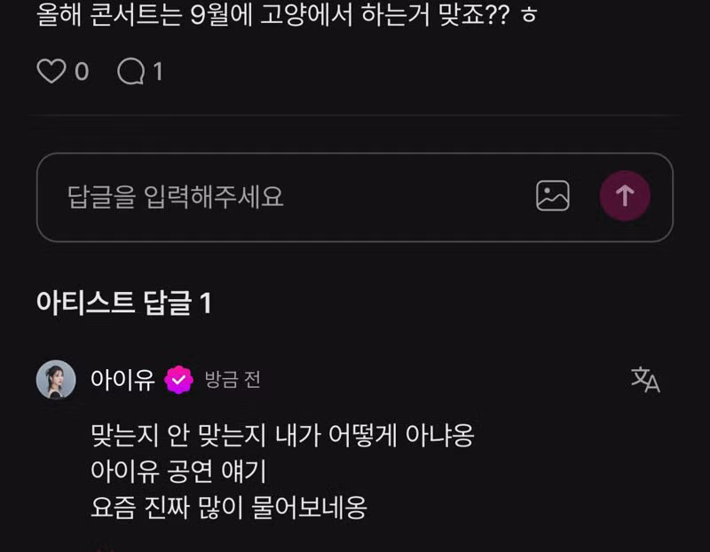 자기 콘서트 얘길 왜 자기한테 물어보냐는 아이유