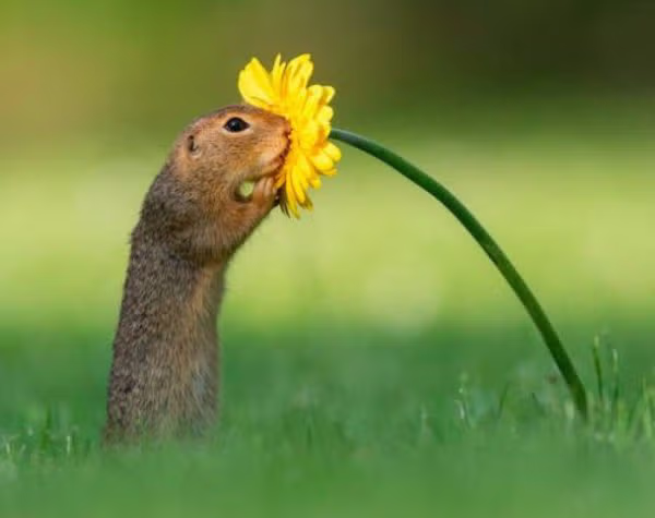 화란국 작가가 찍은 꽃냄새 맡는 다람쥐