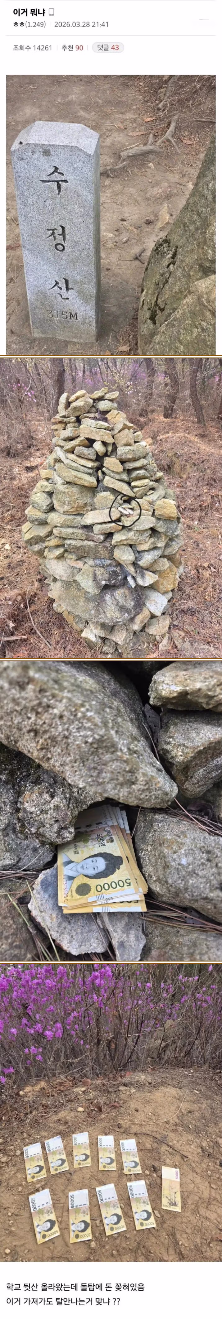 학교 뒷산에서 50만원 발견한 디시인