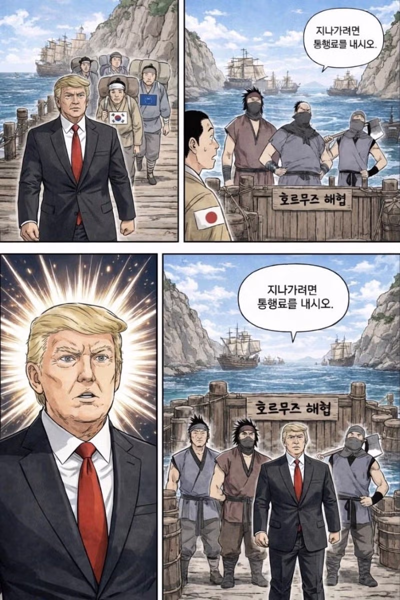 AI한테 현재 호로무즈 해협 근황을 만화로 그려달라고 해봄