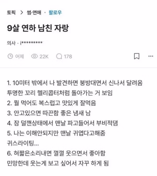 의사의 9살 연하 남친자랑