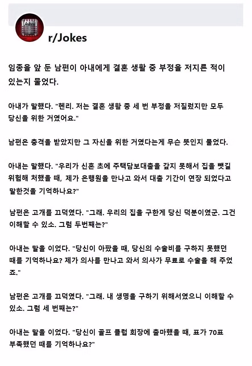 남편을 위해 세 번 몸을 내어줬다는 와이프