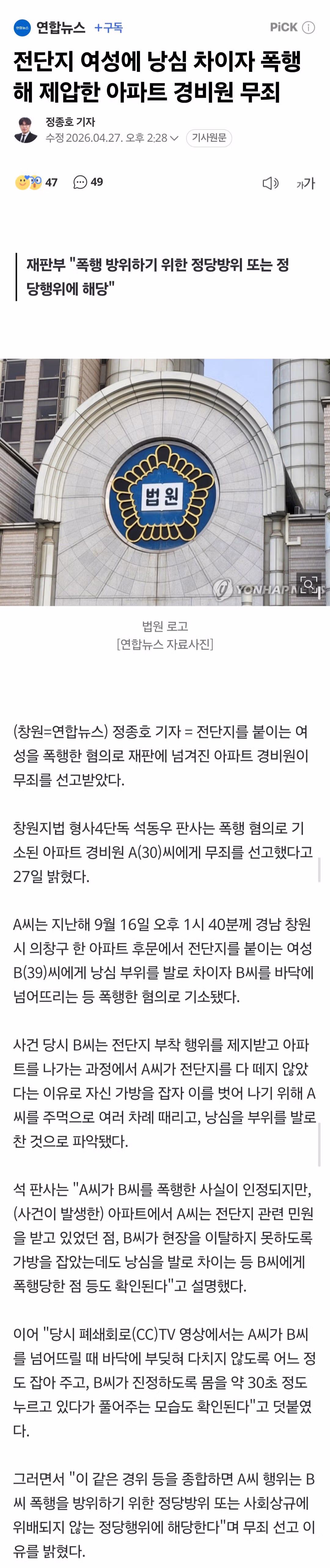 여성에게 낭심 차이자 폭행한 남성 무죄
