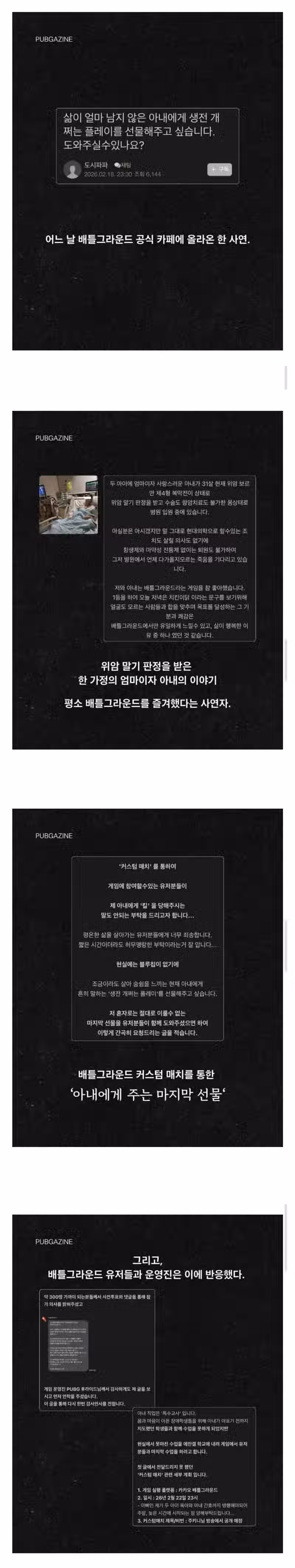삶이 얼마 남지 않은 아내에게 생전 개쩌는 플레이를 선물해주고 싶습니다