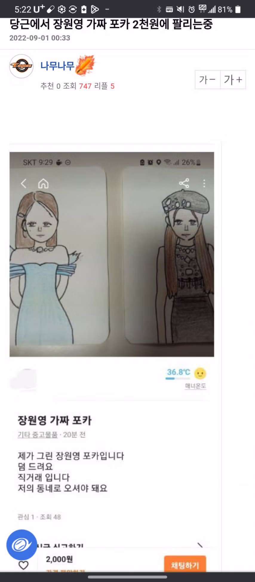 예전 당근에서 거래 되던 장원영 짭포카.jpg