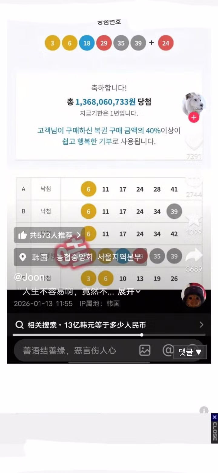 중국인이 한국에서 로또 1등 당첨 ㄷㄷ
