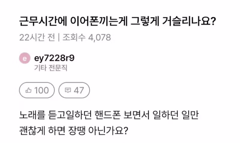 일만 잘하면 이어폰끼고 일해도 문제없지 않음 ?