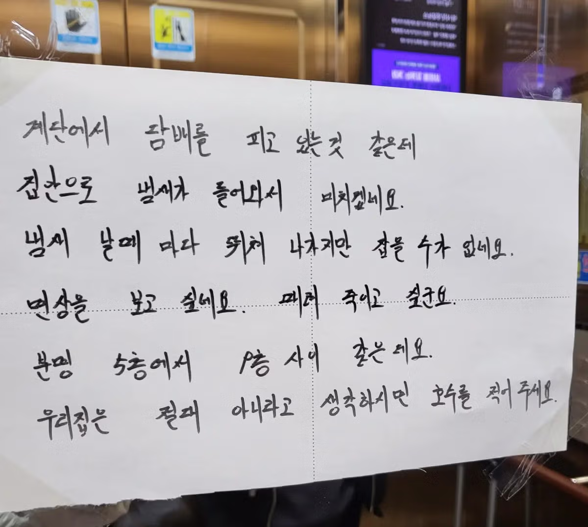 생활의 지혜 : 각층 계단 근처 소화전 뒤져보면 거기에 담배나 재떨이 숨겨놓는 경우가 많아서 범인 색출할 가능성 높아짐