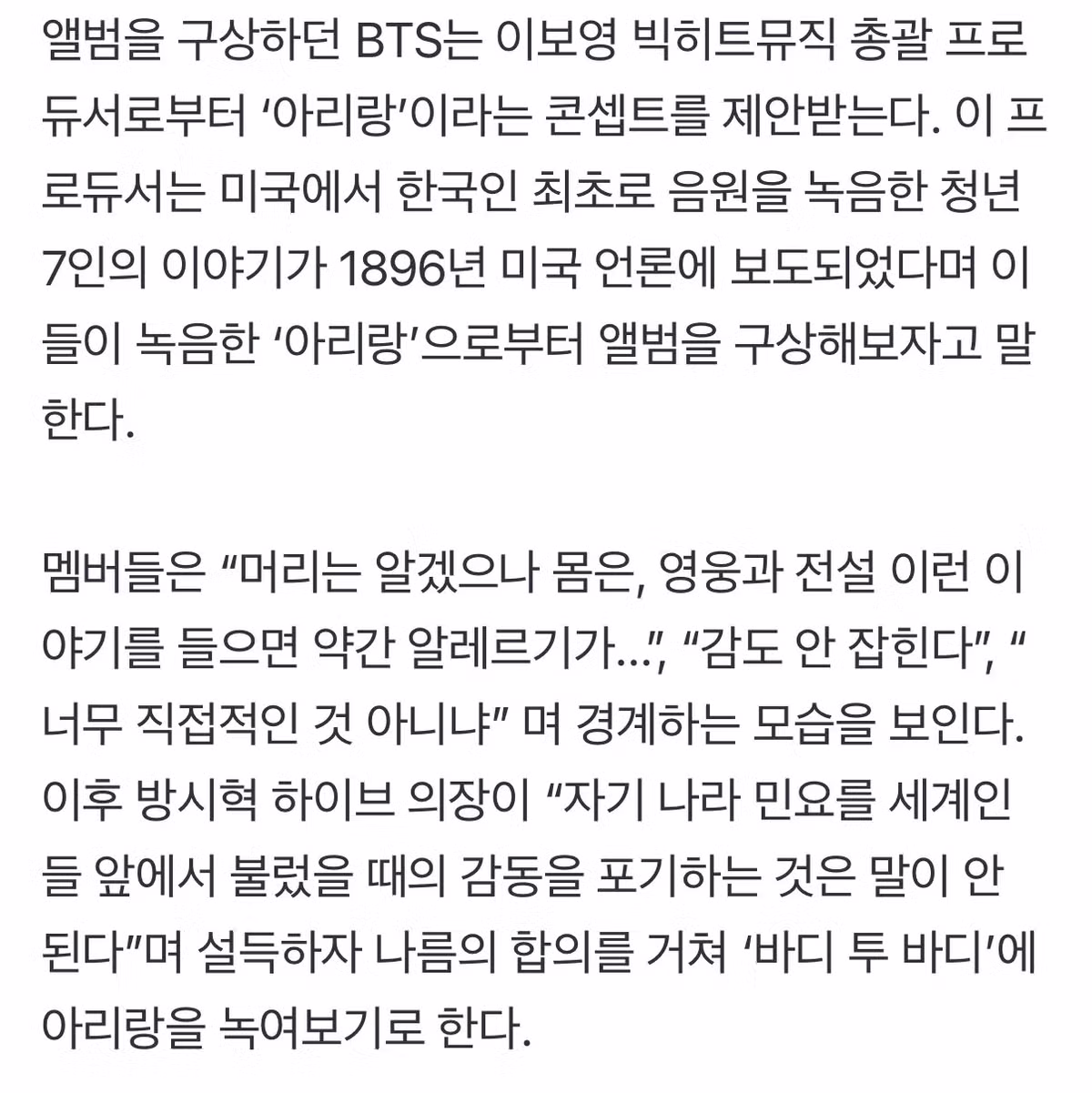 Bts멤버들도 이번 앨범 국뽕으로 하기 싫어했음