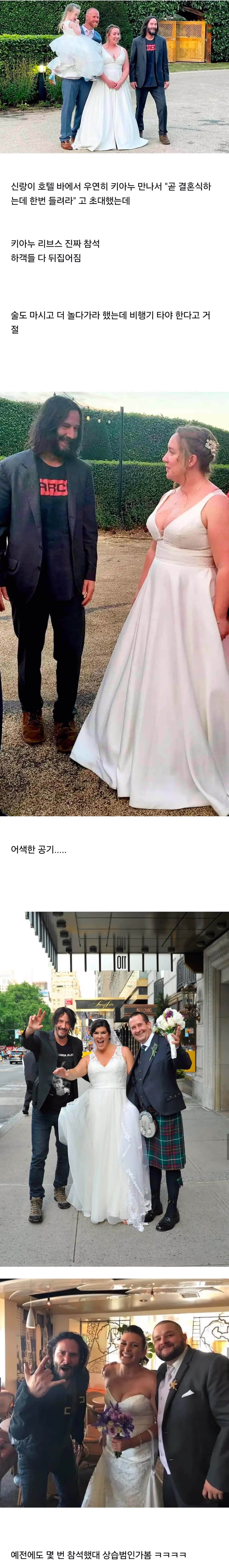 모르는 사람 결혼식 참석한 키아누 리브스