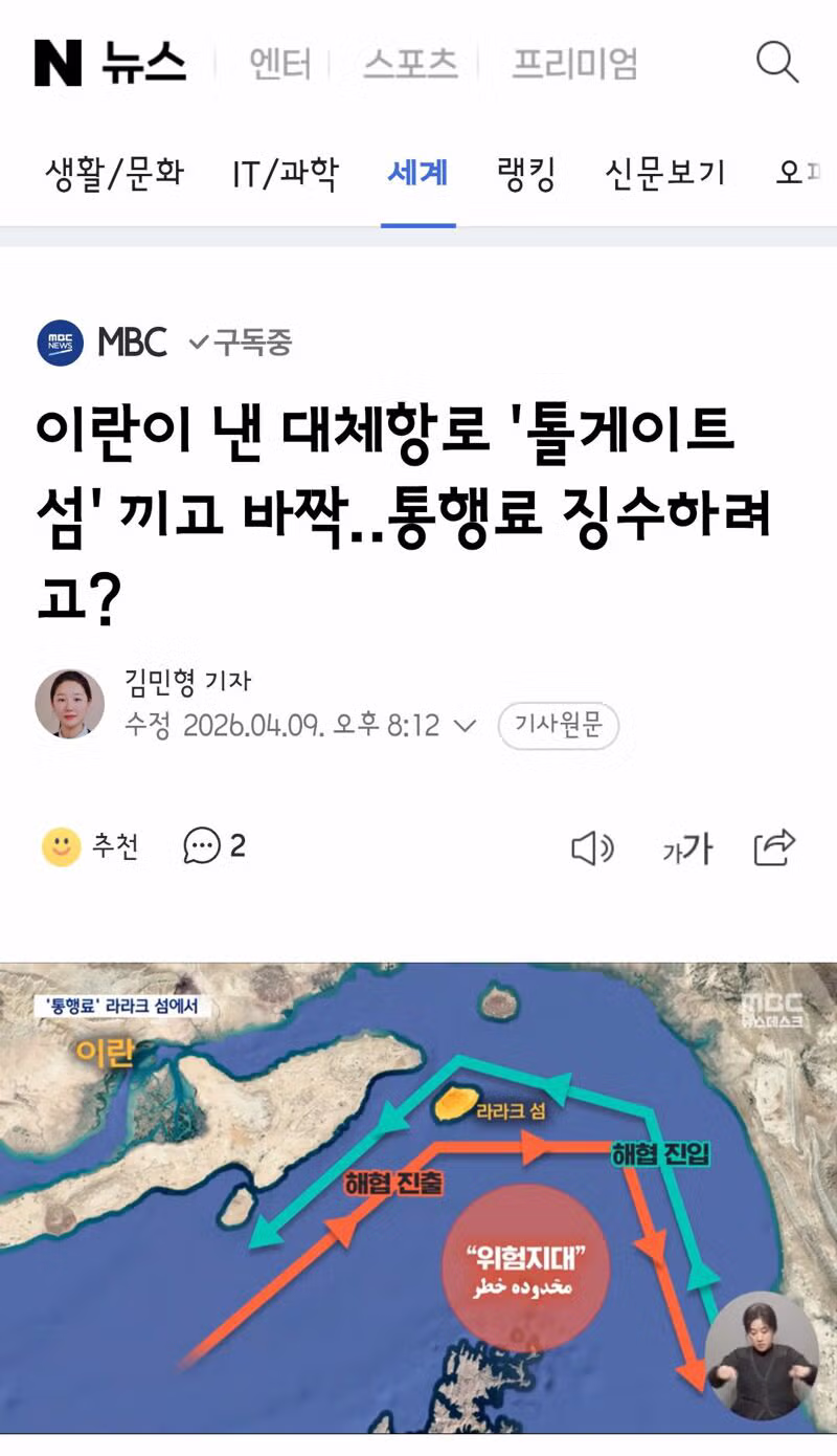 저기서 유조선 하나 침몰하는순간 이란은 전세계의 적이 될듯 개양아치들 지들이 장강수로채 수적이야 뭐야 퉷