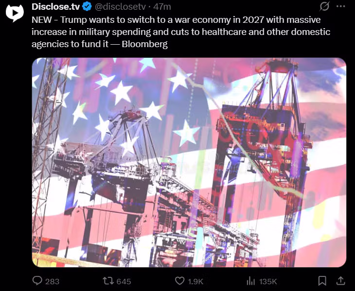 속보) 미국.2027년까지 전시경제체제로 전환.