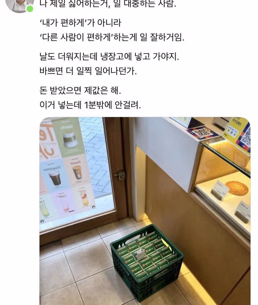 우유배달부한테 갑질하는 카페 사장