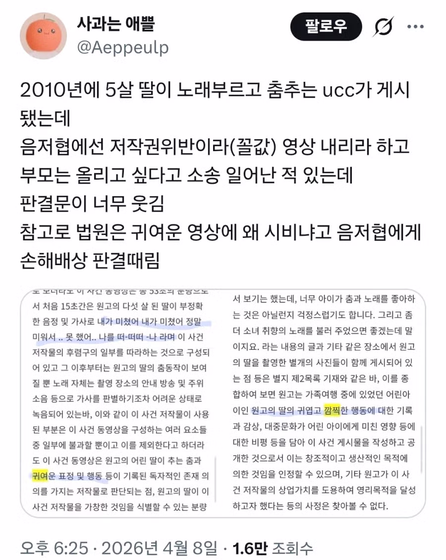 애기 아빠가 음저협 고소한거래