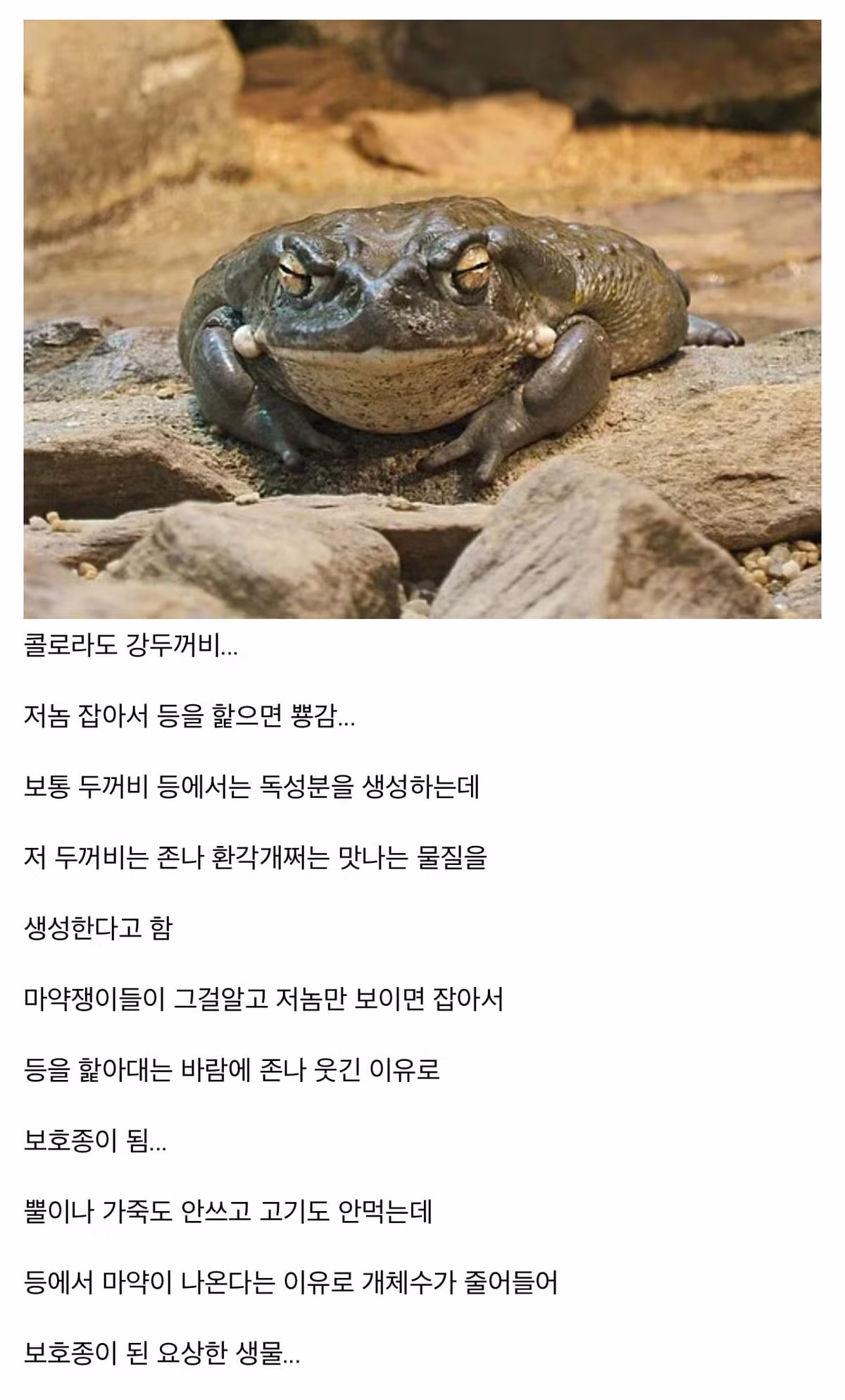 도대체 저걸 처음 발견한 사람은 어떤 이유에서 두꺼비 등을 핥은걸까