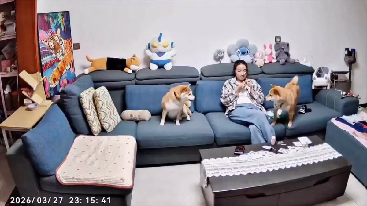 사람 문 개 훈육하는 여자
