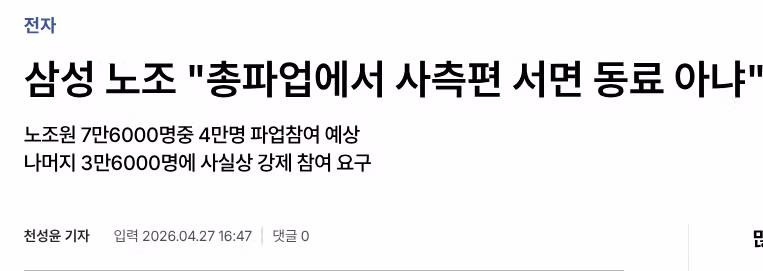 삼성 노조 "총파업에서 사측편 서면 동료 아냐"