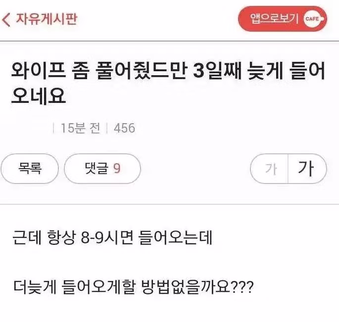 와이프가 늦게 들어와서 고민인 유부남