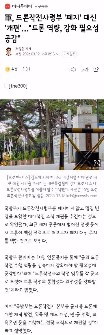 드론작전사령부 '폐지' 대신 '개편'…"드론 역량, 강화 필요성 공감"