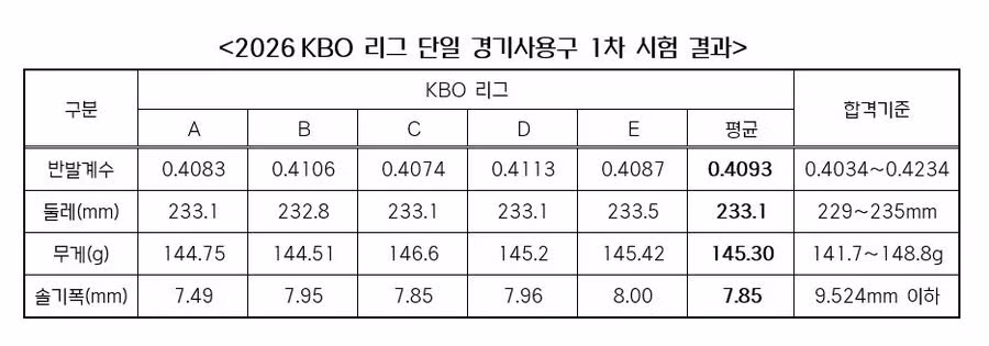 2026 KBO 공인구 1차 수시검사 결과 발표