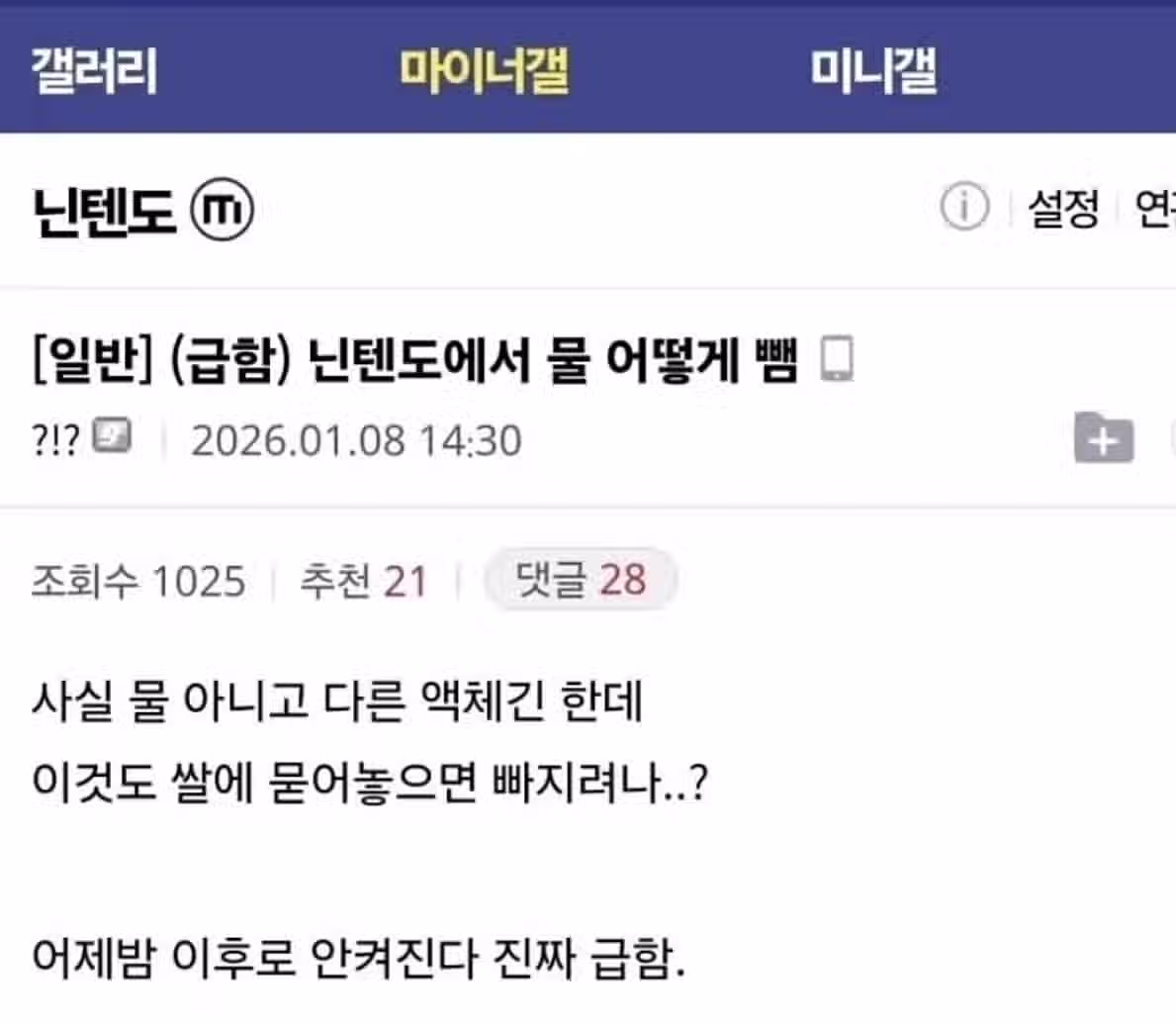 오이갤러 님들 닌텐도에서 물 어떻게 뺌?