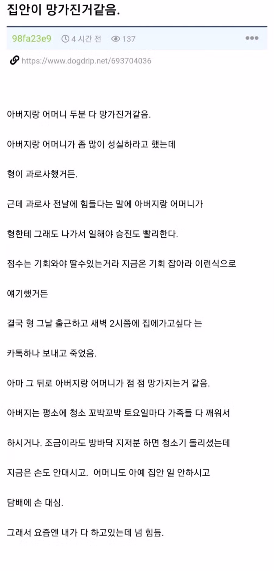 부모인 본인들이 아들을 죽였다고 생각할듯 헤어나오기가 쉽지 않겠다