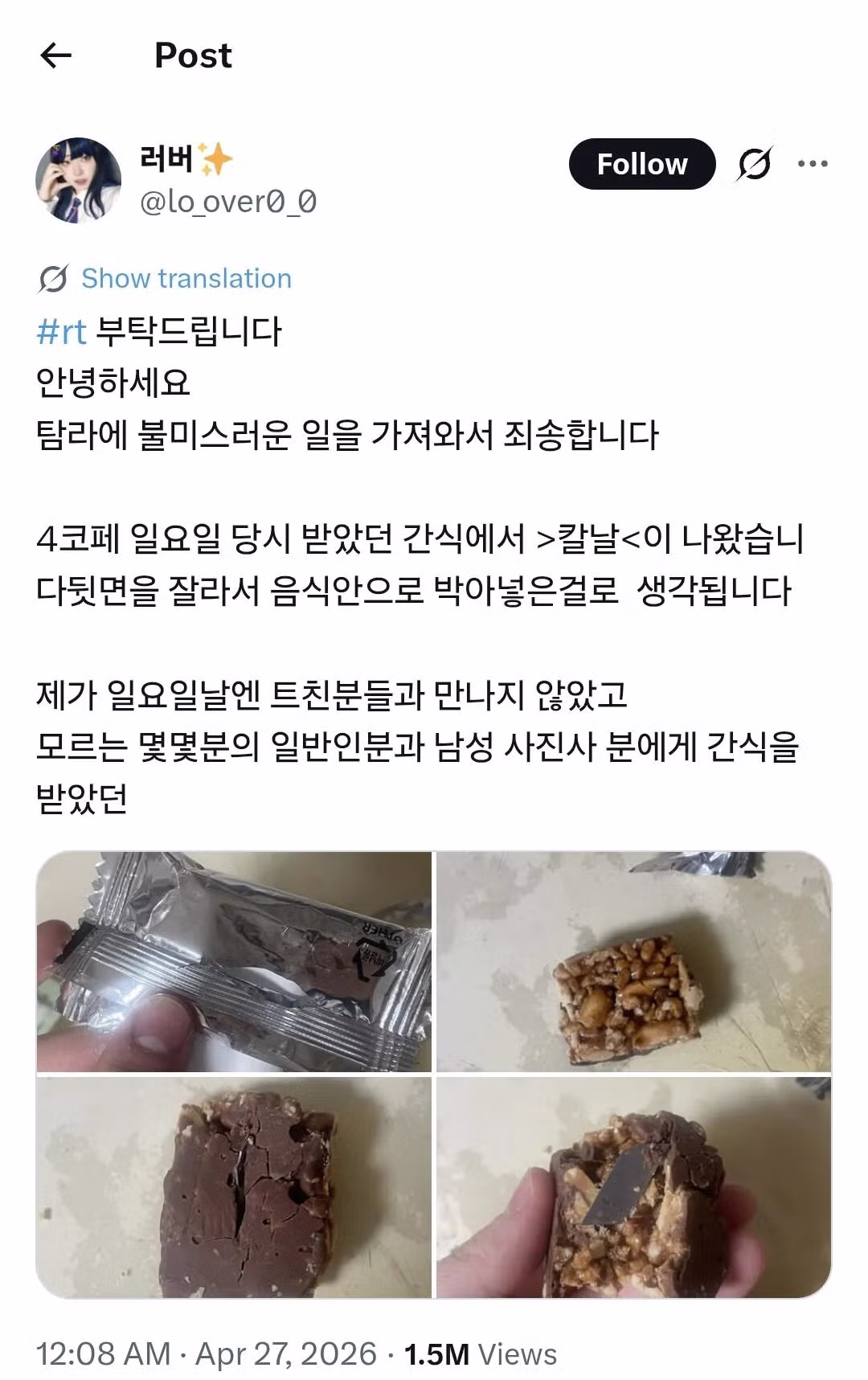 간식에 칼날 테러당한 여자코스어 ㄷㄷ