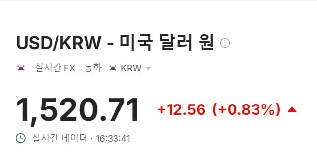 [속보] 원/달러 환율, 1,520원 넘어…금융위기 이후 처음