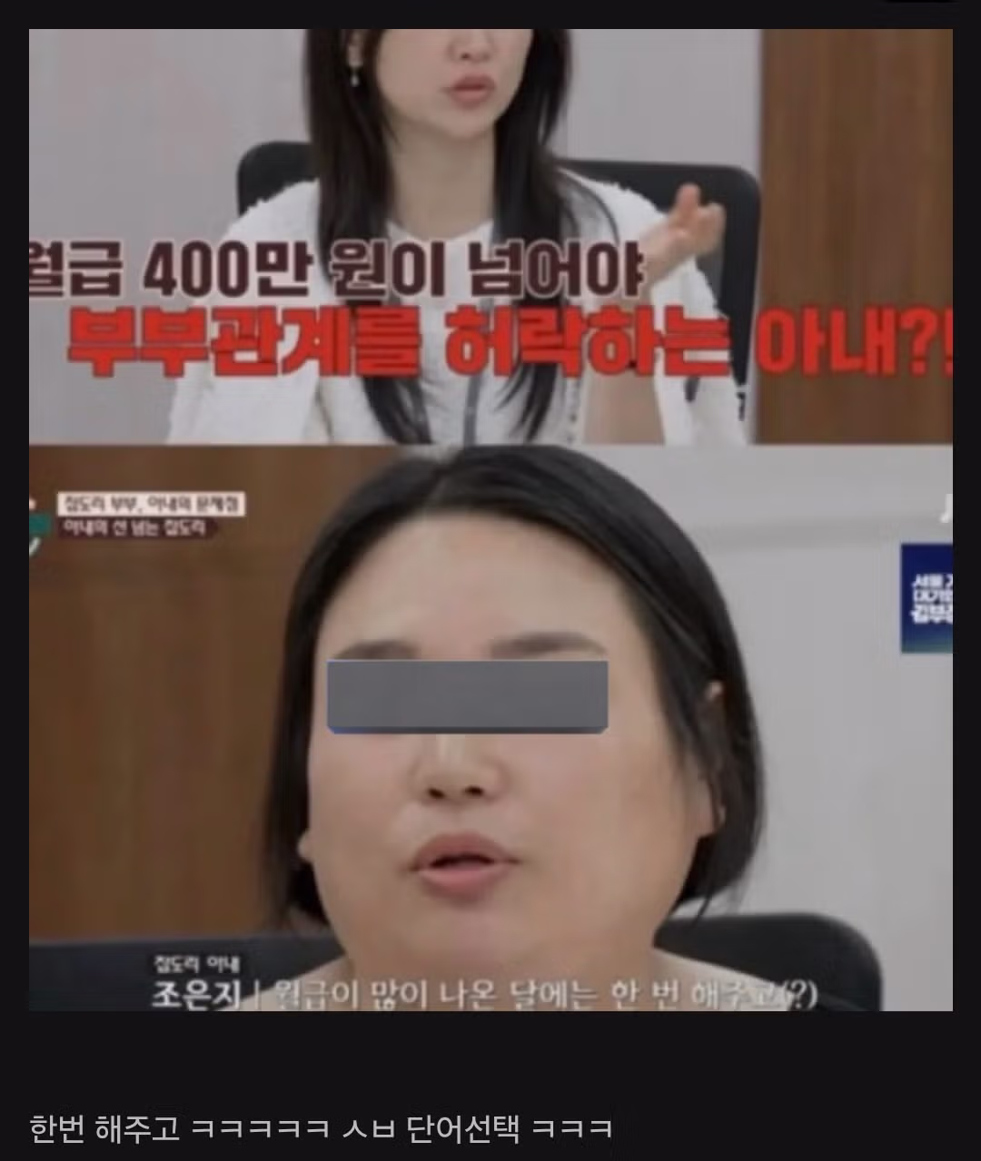월급 400넘어야 부부관계 허락해주는 마눌 ㄷㄷㄷ