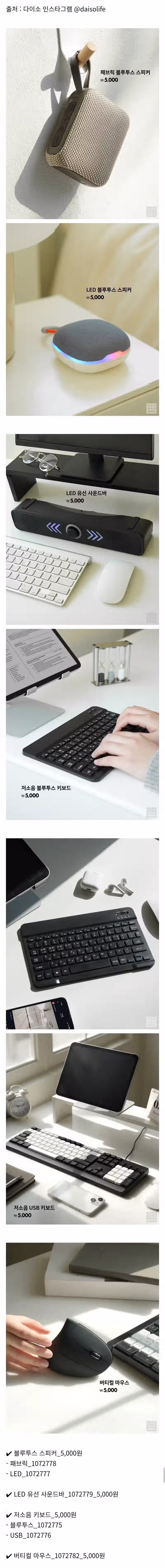 다이소 3월 신상 - 블루투스 스피커, 사운드바, 블루투스 키보드, 유선 키보드, 버티컬 마우스