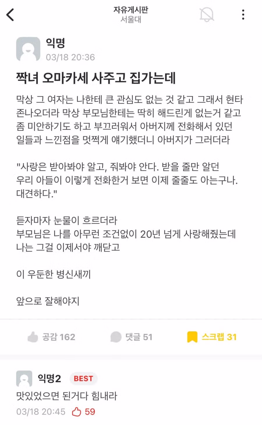 짝녀 오마카세 사주고 깨달음을 얻은 서울대생